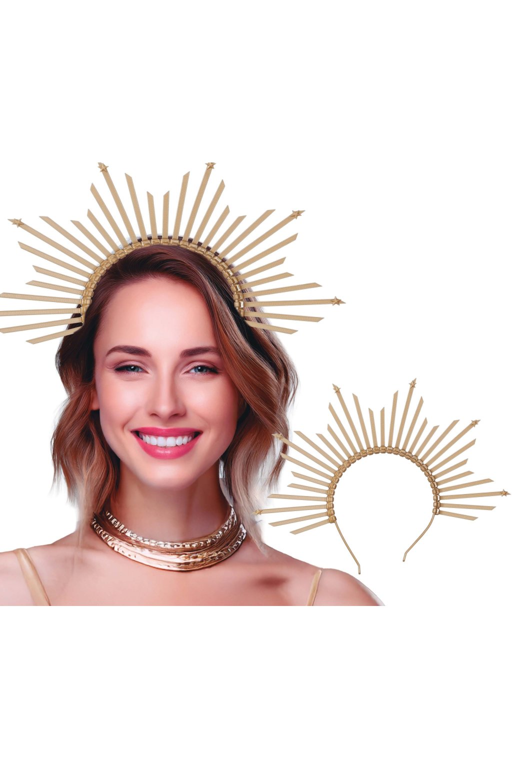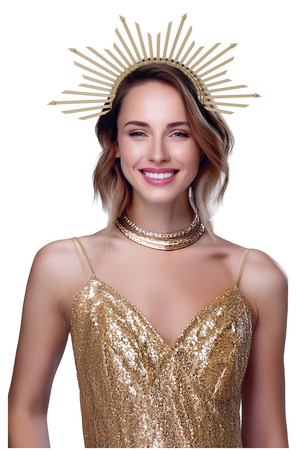 výrazná zlatá čelenka ve stylu barokní svatozáře