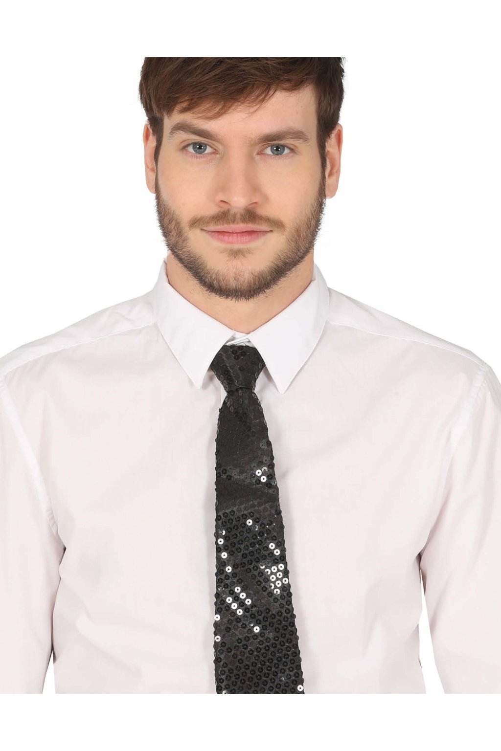 černé flitry dodávají kravate výrazný, ale decentní třpyt
