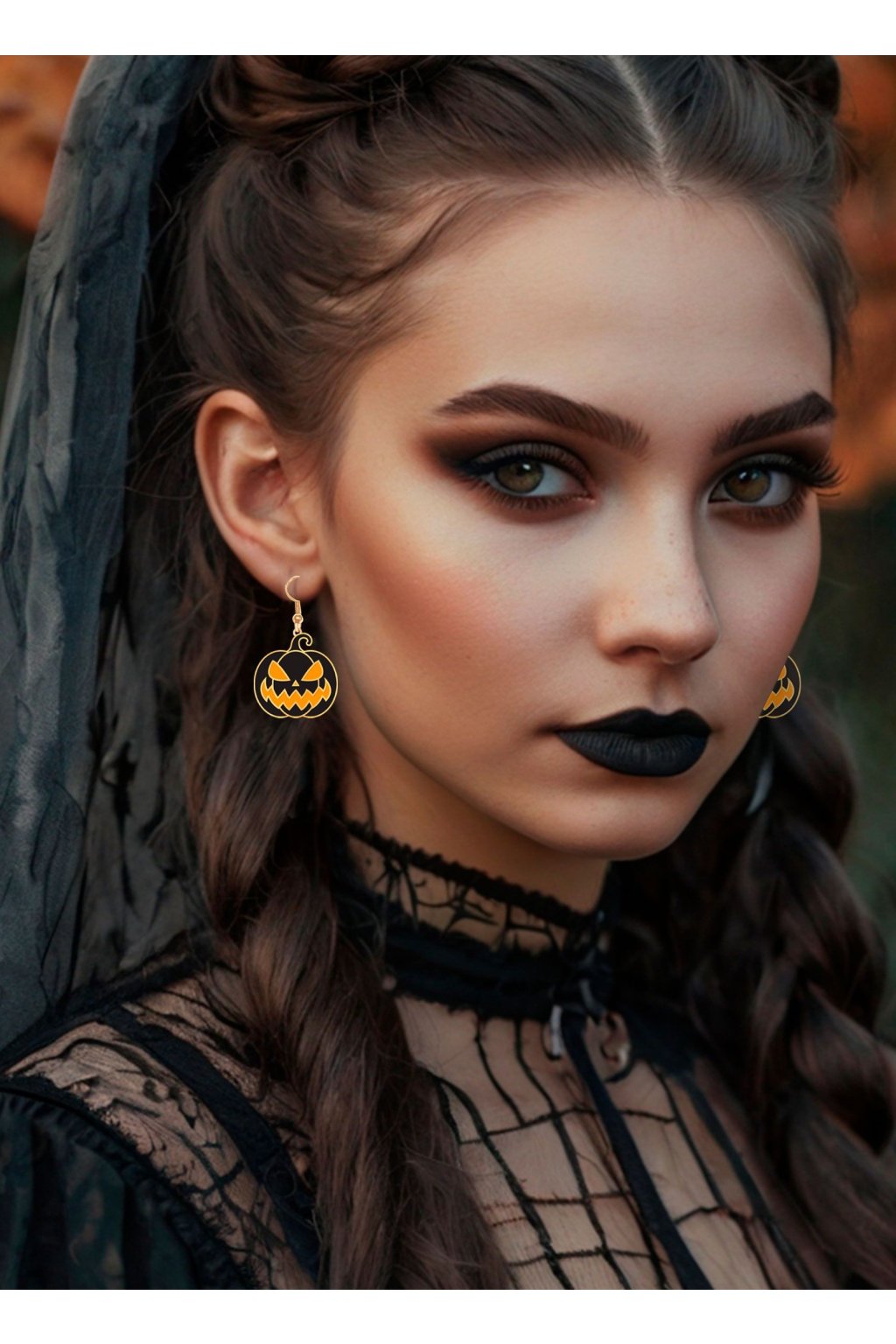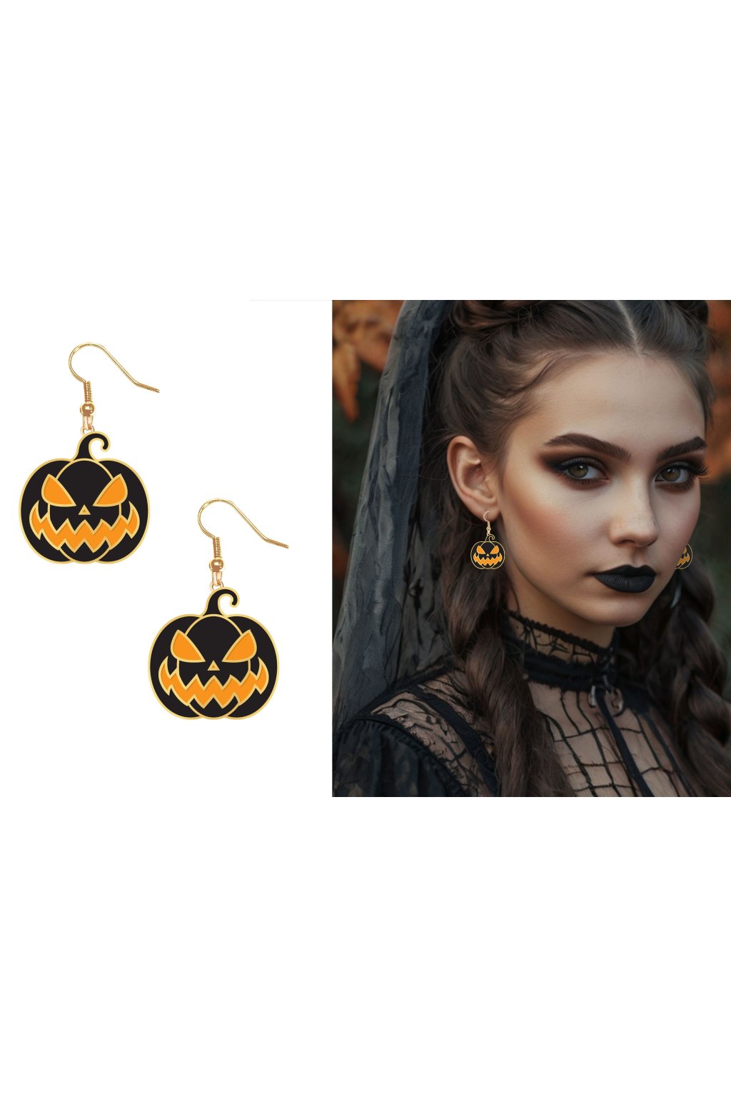 Výrazné visací náušnice s motivem děsivě laděné černé dýně