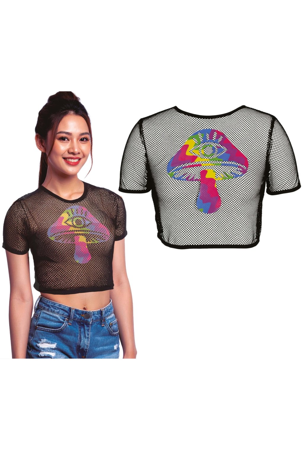 Černý síťovaný párty top - Mushrooms