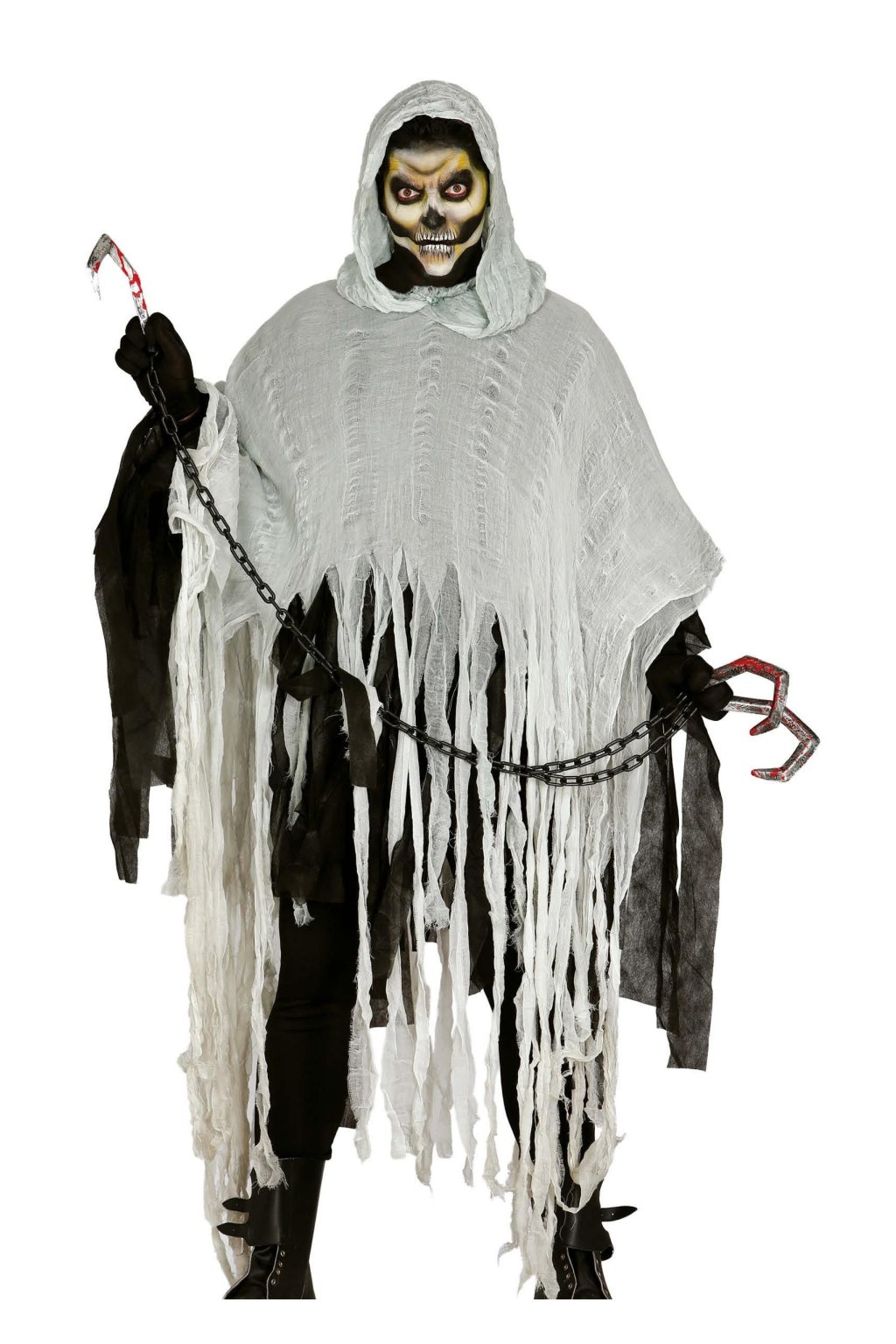 Dlouhá potrhaná tunika s kapucí evokuje vzhled ztracené duše nebo smrtonoše