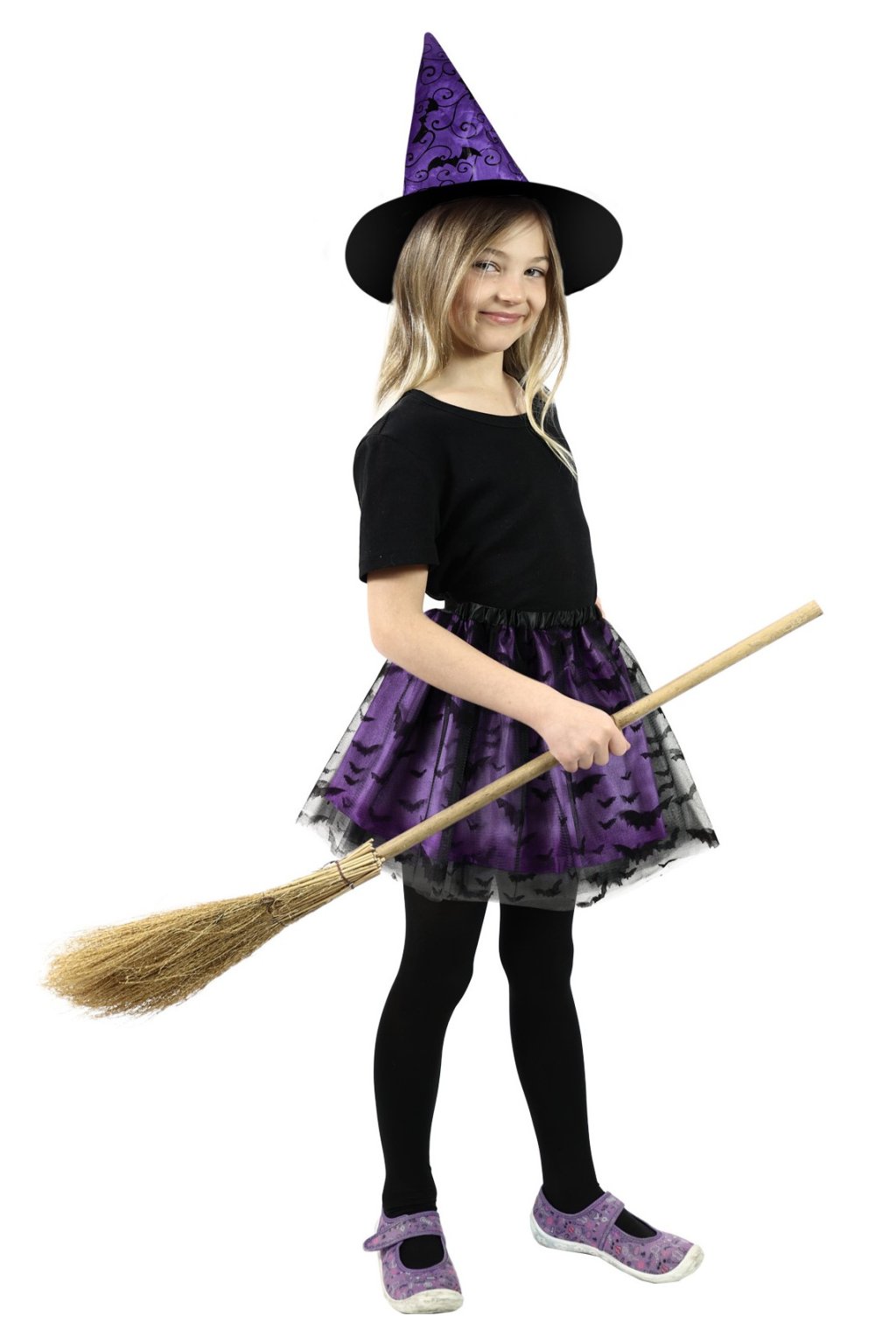 Fialová tylová sukně s černými netopýry – hravý a strašidelný vzhled