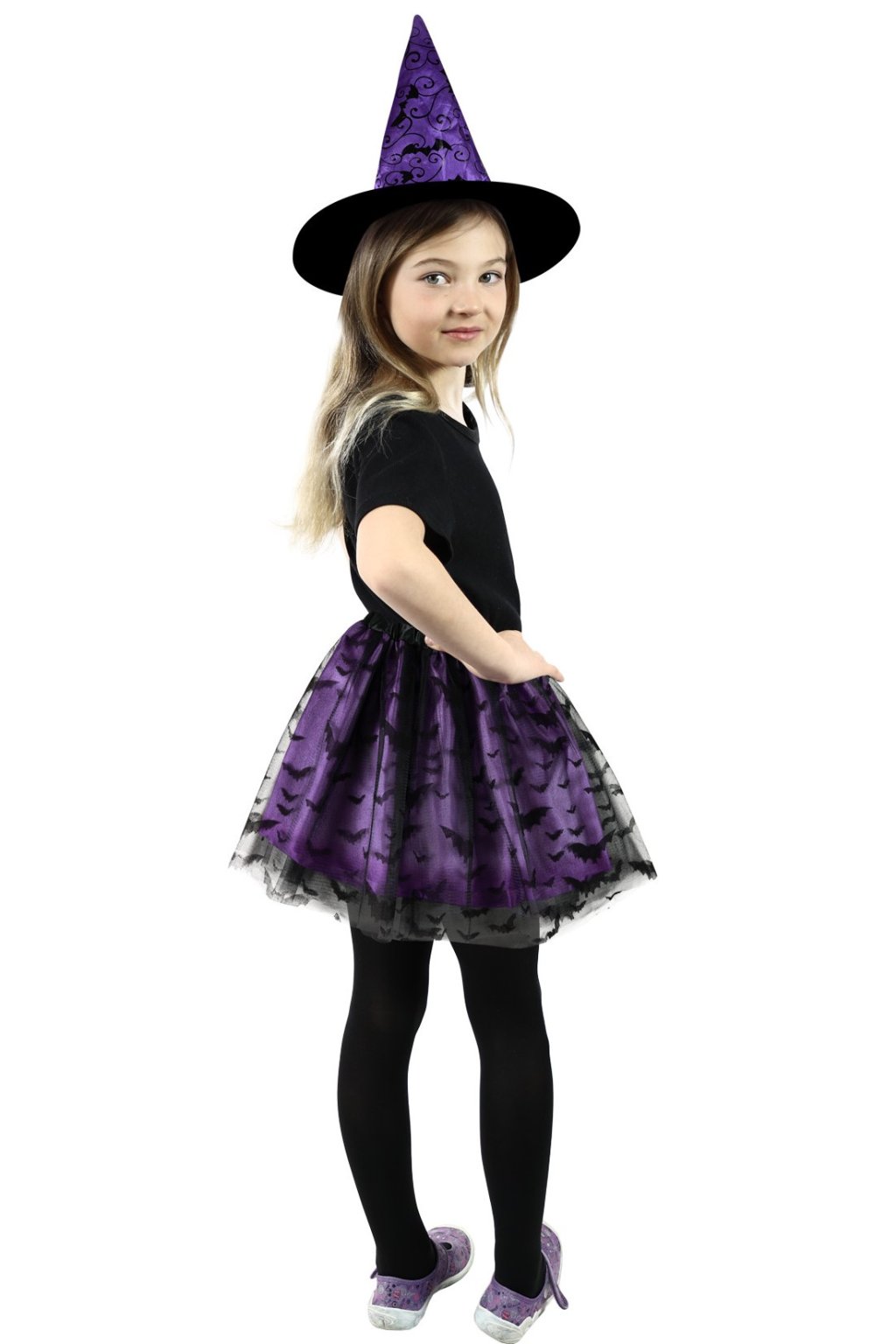 Fialová tylová sukně s černými netopýry – hravý a strašidelný vzhled