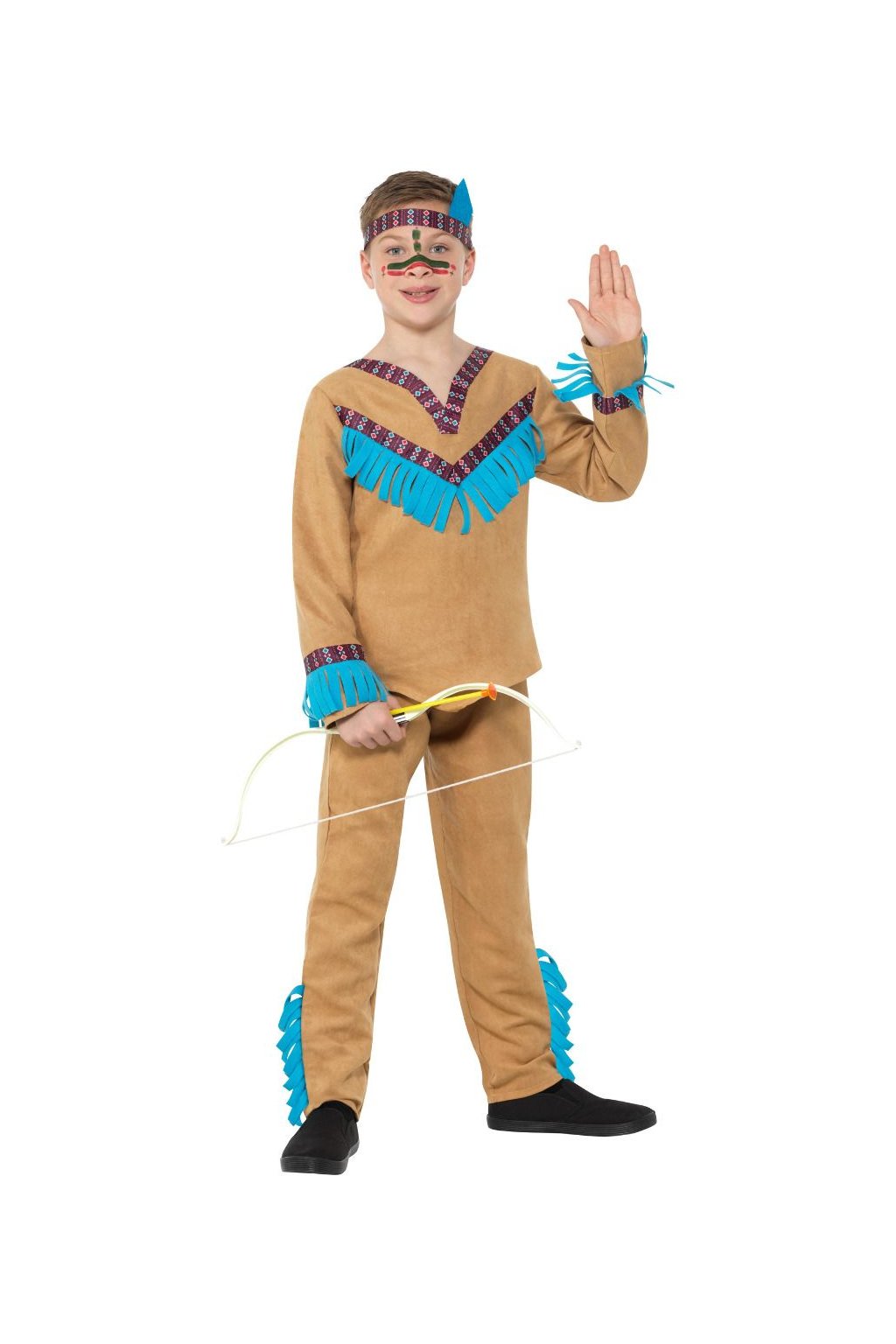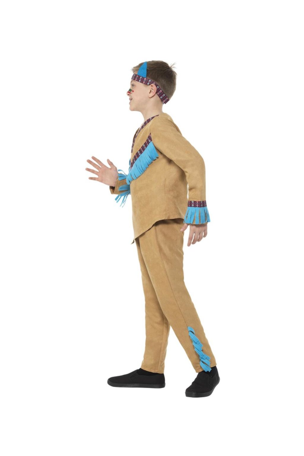 Tento dětský kostým obsahuje indiánskou halenku, kalhoty a čelenku.