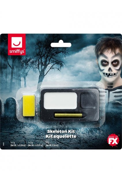 Kostlivec makeup - bílý a černý makeup, černá líčící tužka a aplikační houbička