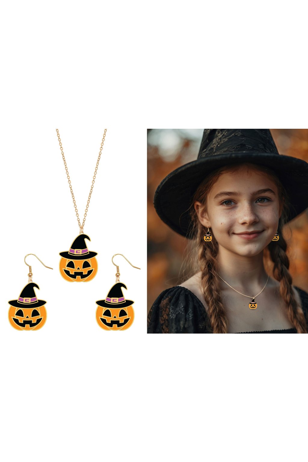 Roztomilá sada s dýní v klobouku – náhrdelník a visací náušnice