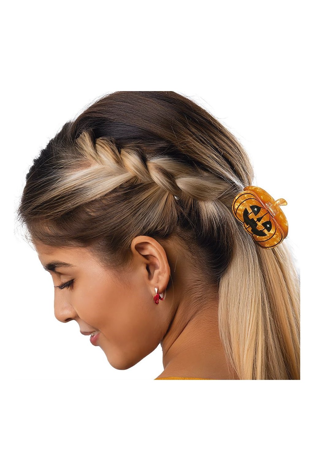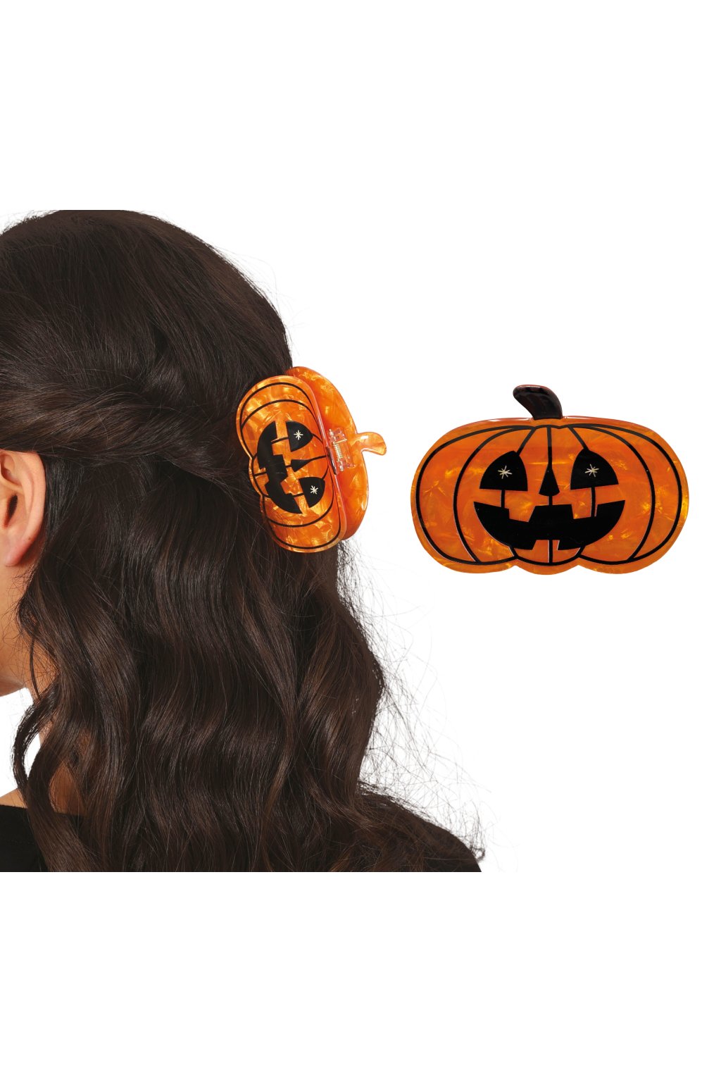 Výrazná plastová sponka ve tvaru usměvavé dýně
