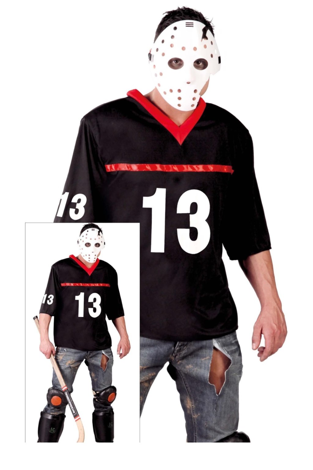 Obsahuje děsivou masku, černý dres s číslem 13 a ramenní vycpávky