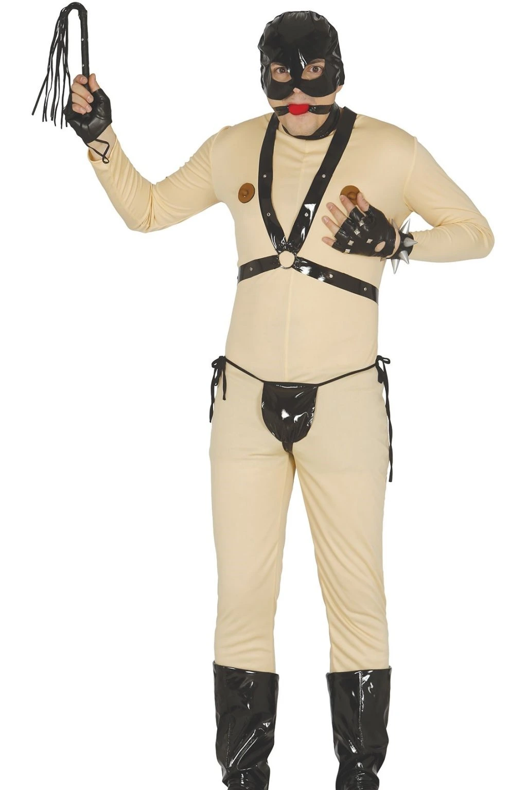 Součást balení: overal, postroj, maska, tanga a náhubek