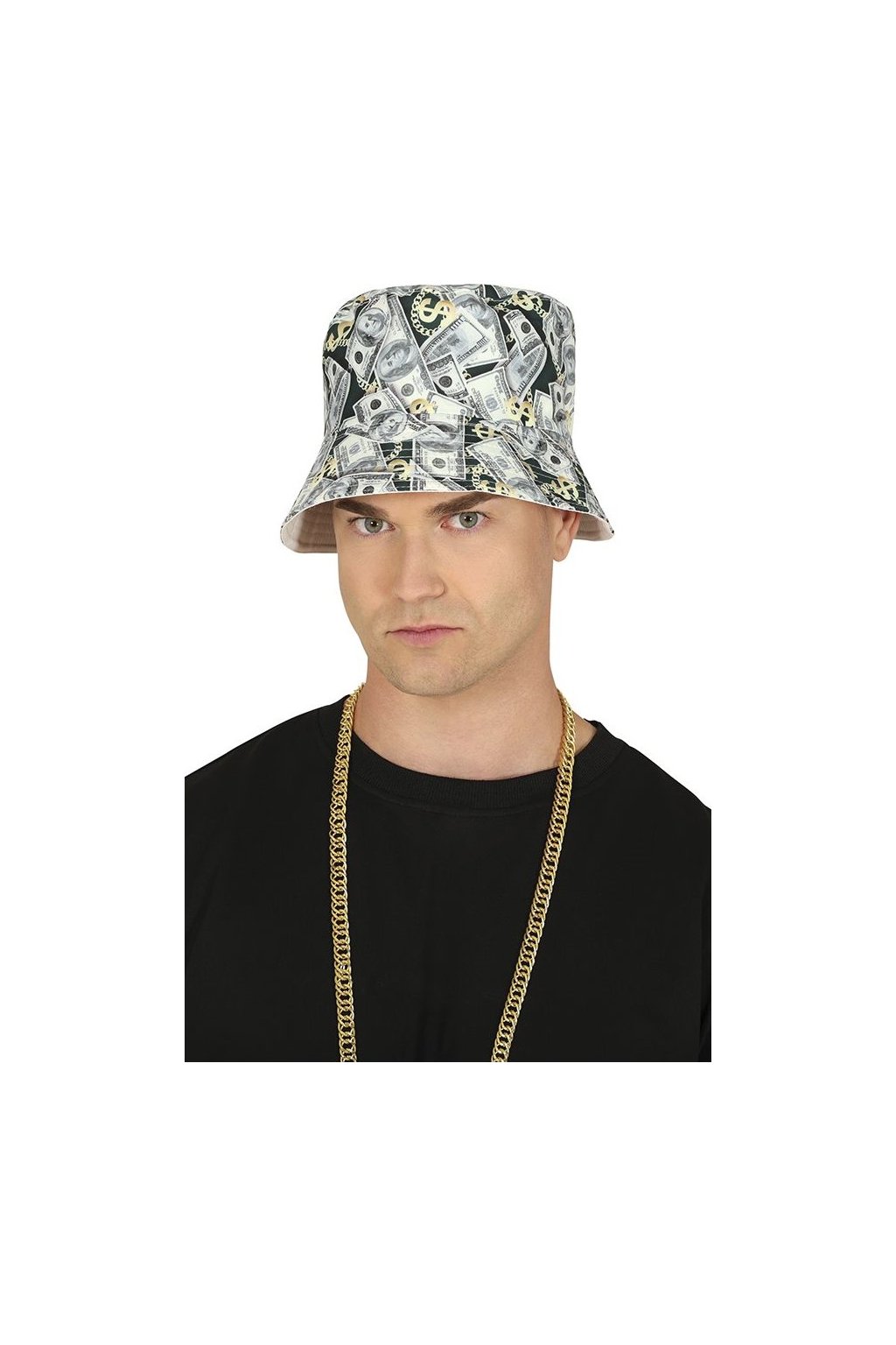 Stylový bucket hat s potiskem dolarových bankovek a zlatých symbolů $