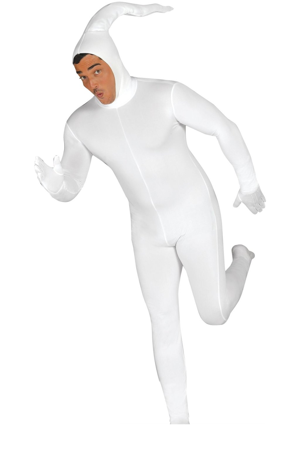 Celotělový overal s přiléhavou kapucí a charakteristickým „ocáskem“