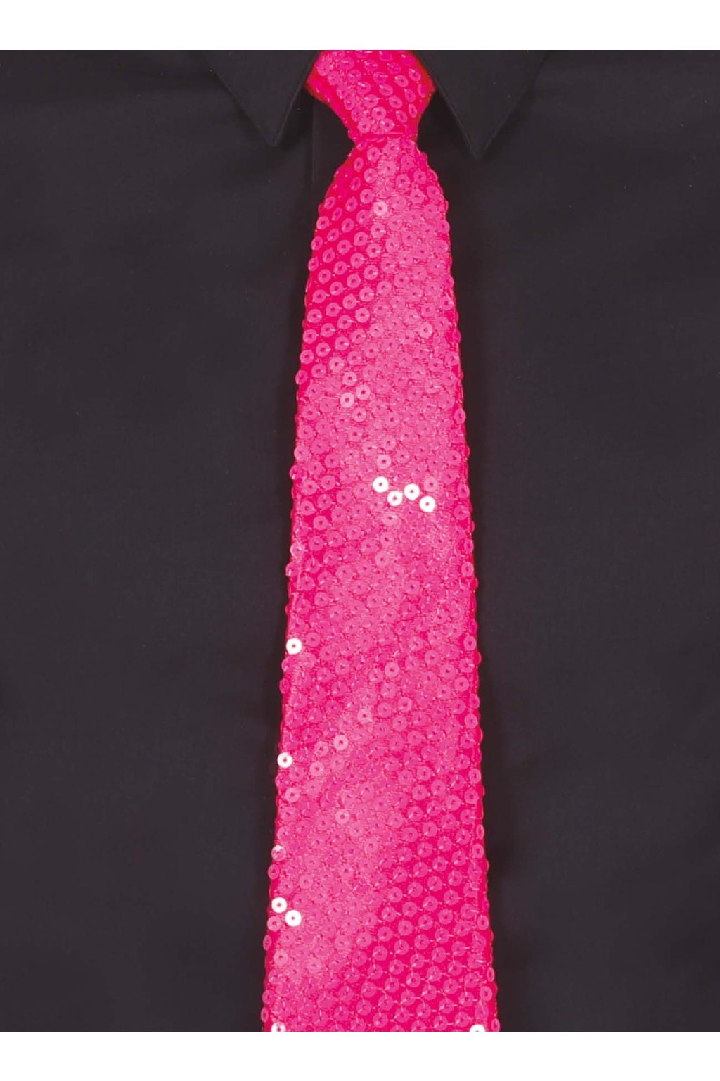 Neonově růžová flitrovaná kravata – nepřehlédnutelný doplněk 35 cm