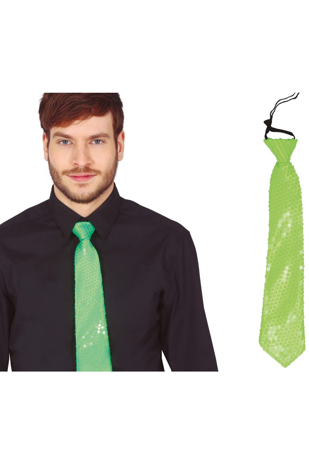 Neonově zelená flitrovaná kravata – zářivý efekt 35 cm