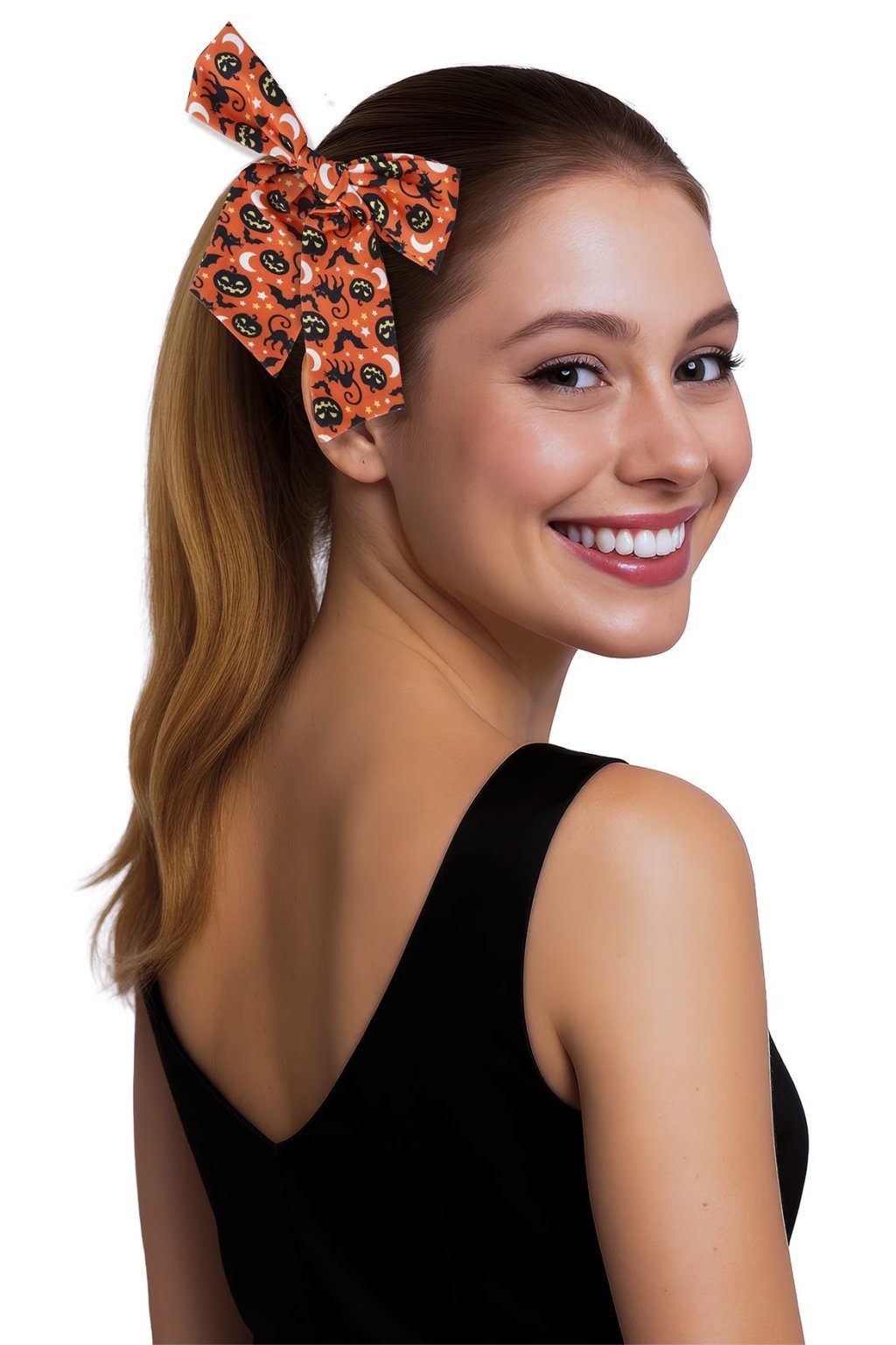 Oranžová mašle do vlasů s gumičkou - Halloween
