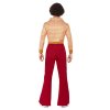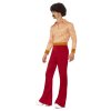 Jasně červené kalhoty se střihem do zvonu zvýrazní každé taneční otočky