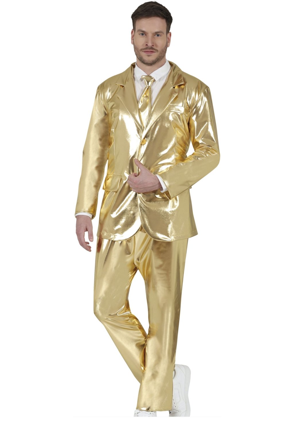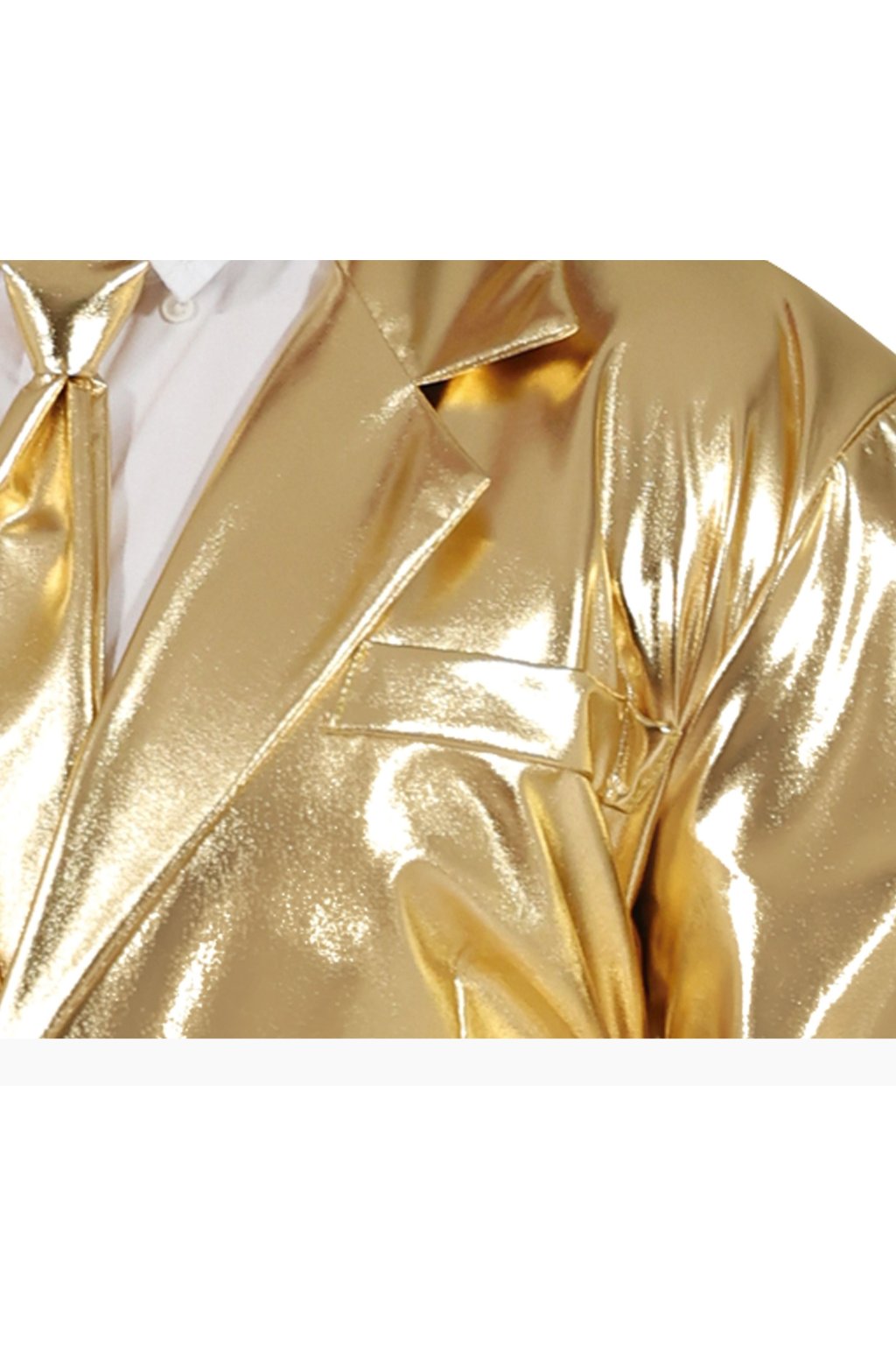 Třídílný komplet: sako, kalhoty a kravata ve zlatém lesku