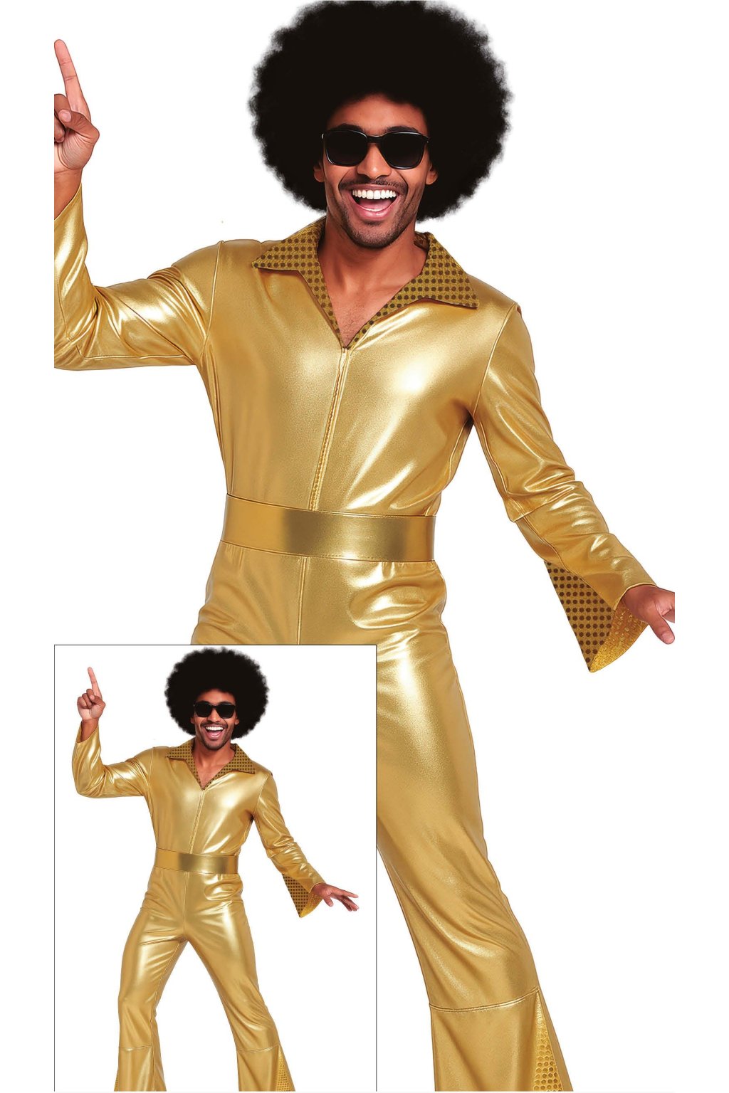 lesklý zlatý overal v ikonickém retro stylu