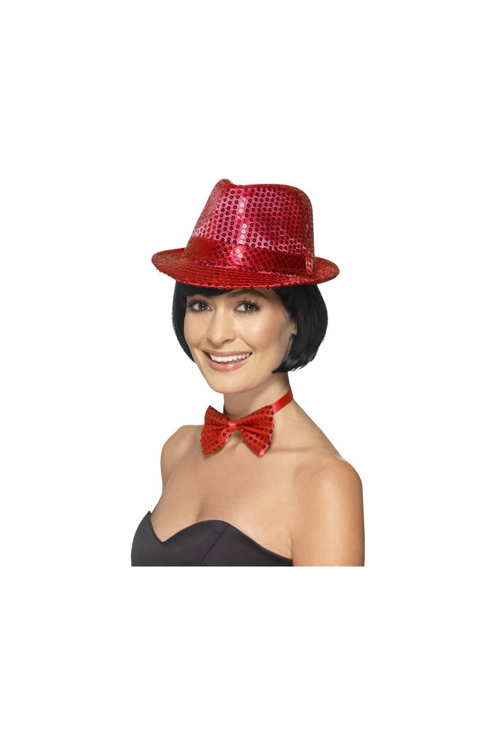 elegantní červený klobouk inspirovaný filmovými gangstery