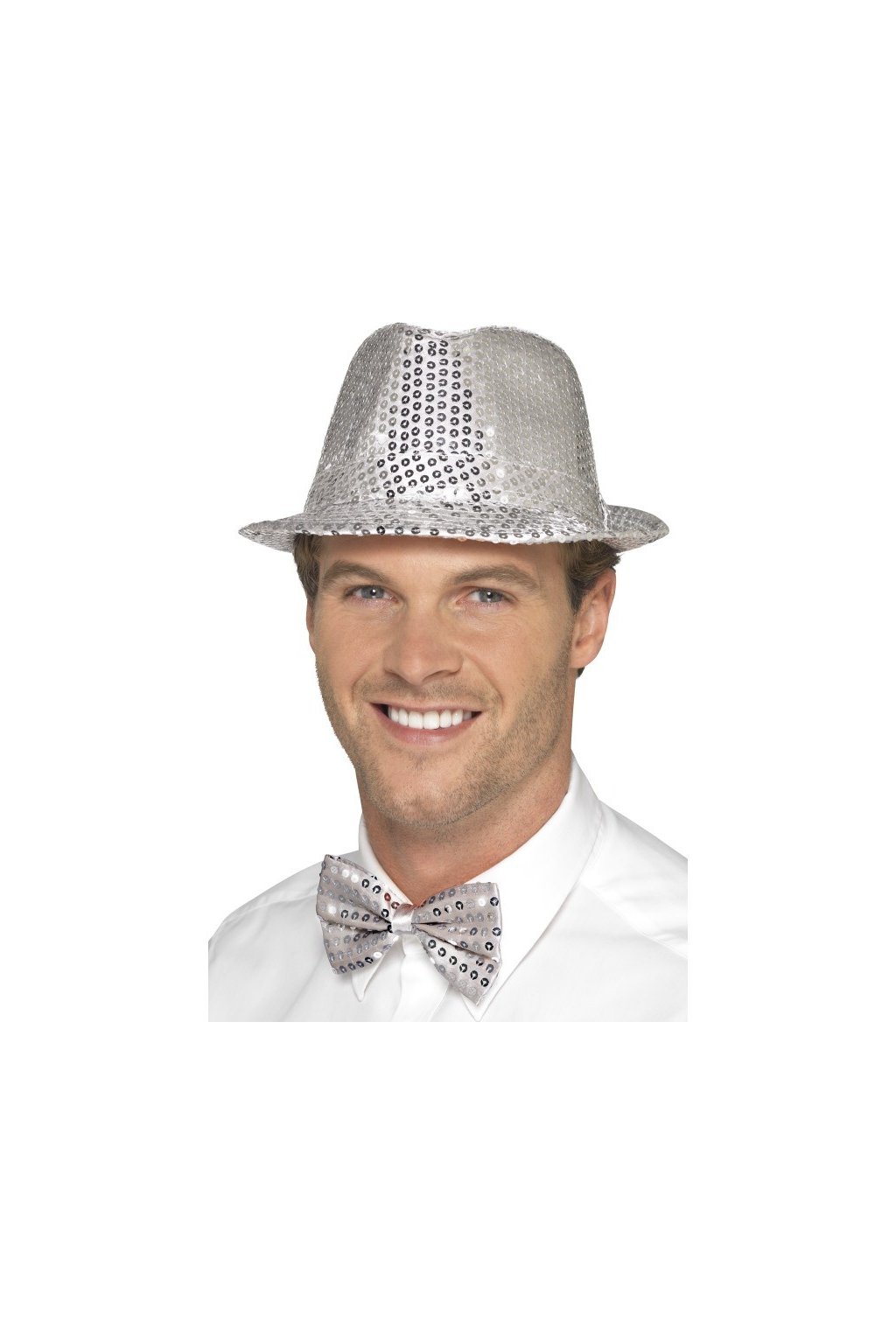 elegantní stříbrný klobouk inspirovaný filmovými gangstery