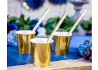 Papírová brčka 10ks - pastalově modrá se zlatými pruhy