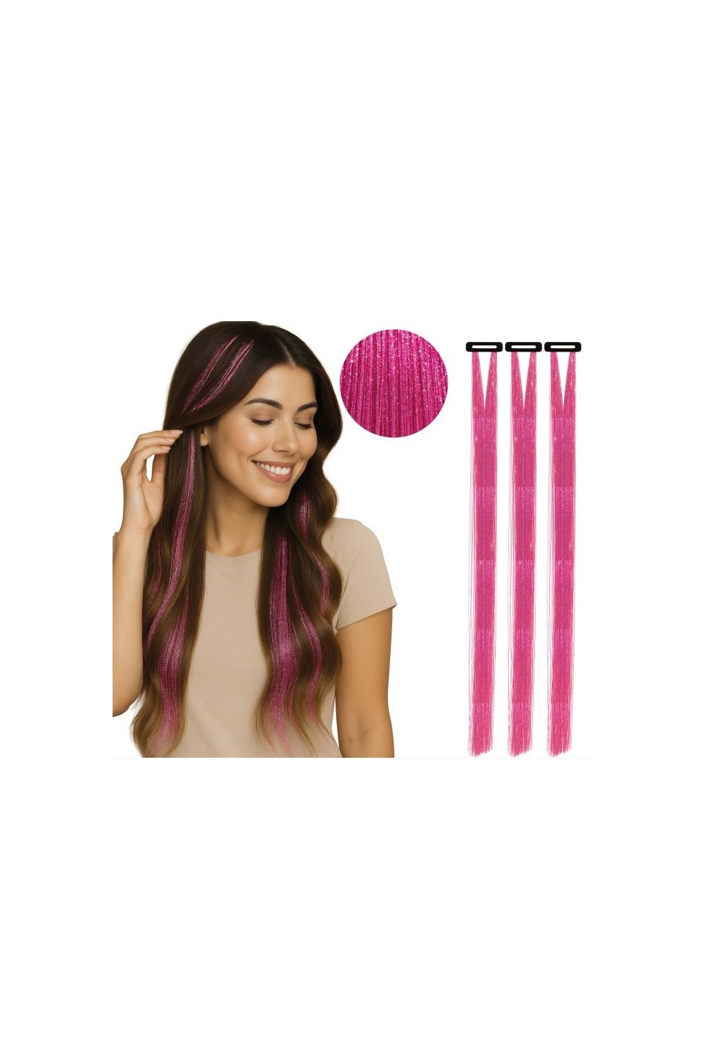 Příčesek – růžový proužek do vlasů (3 ks) – hravý a třpytivý efekt