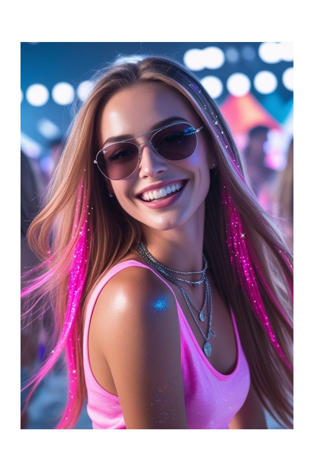 třpytivé růžové pramínky pro jedinečný party a festivalový styl