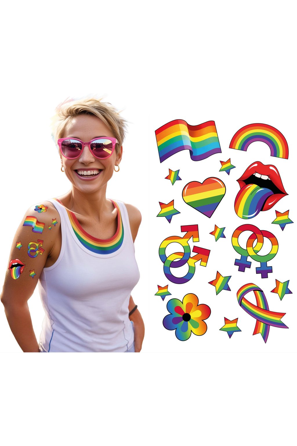 Tato tetování jsou vhodná na Pride festivaly, oslavy, karneval, tematické párty i focení.