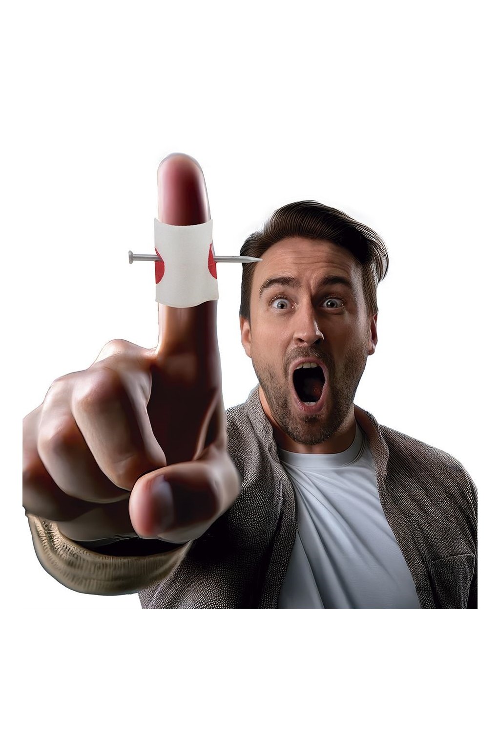realisticky vypadající hřebík skrz prst