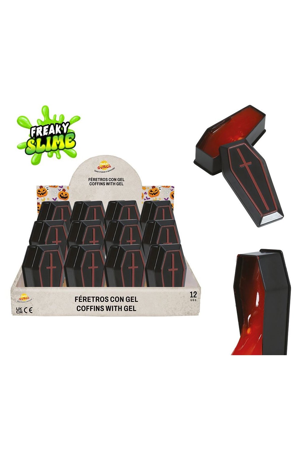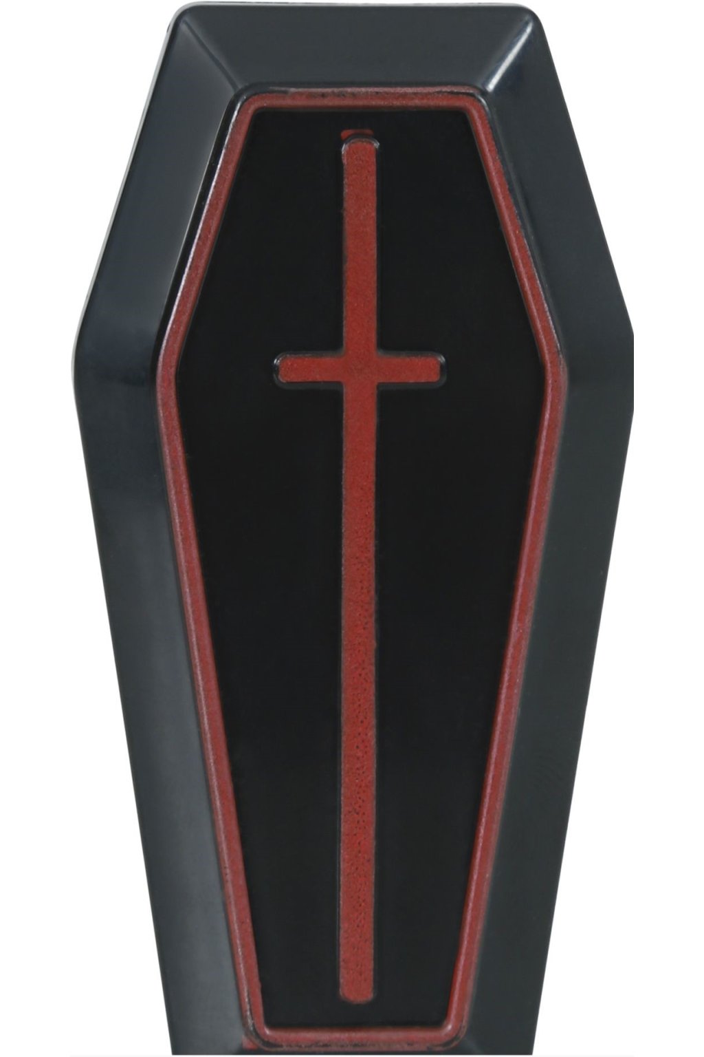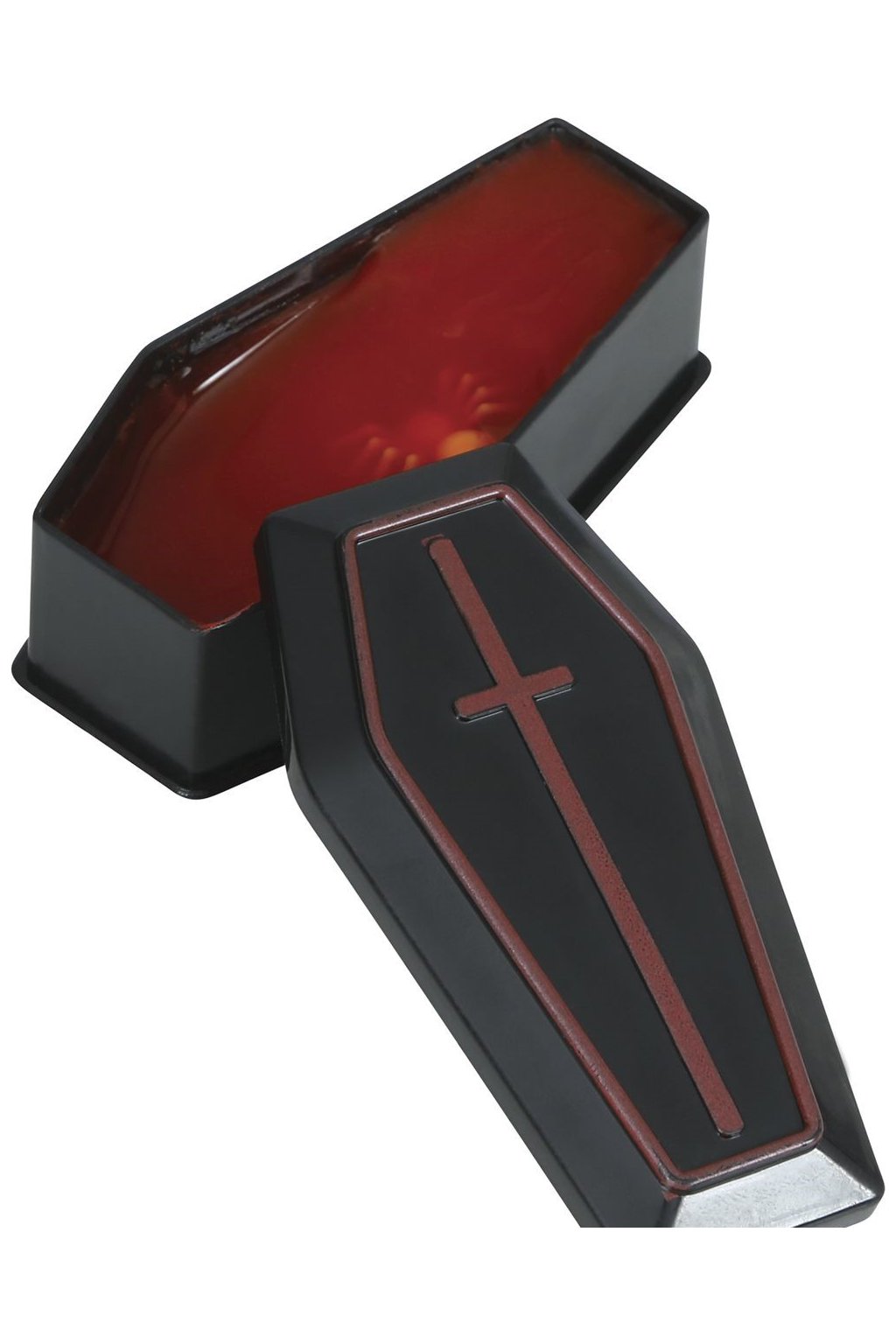 Stylová mini rakev s víkem a temně rudou „krví“ uvnitř