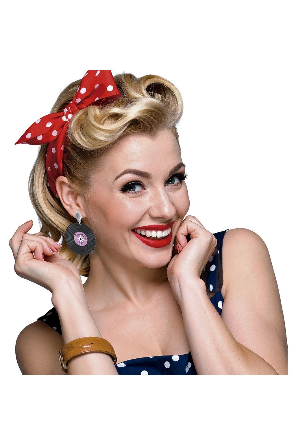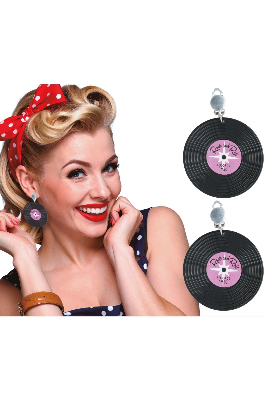 Vrať se v čase s těmito hravými náušnicemi ve tvaru retro vinylových desek – ideální k pin-up nebo rockabilly kostýmu!