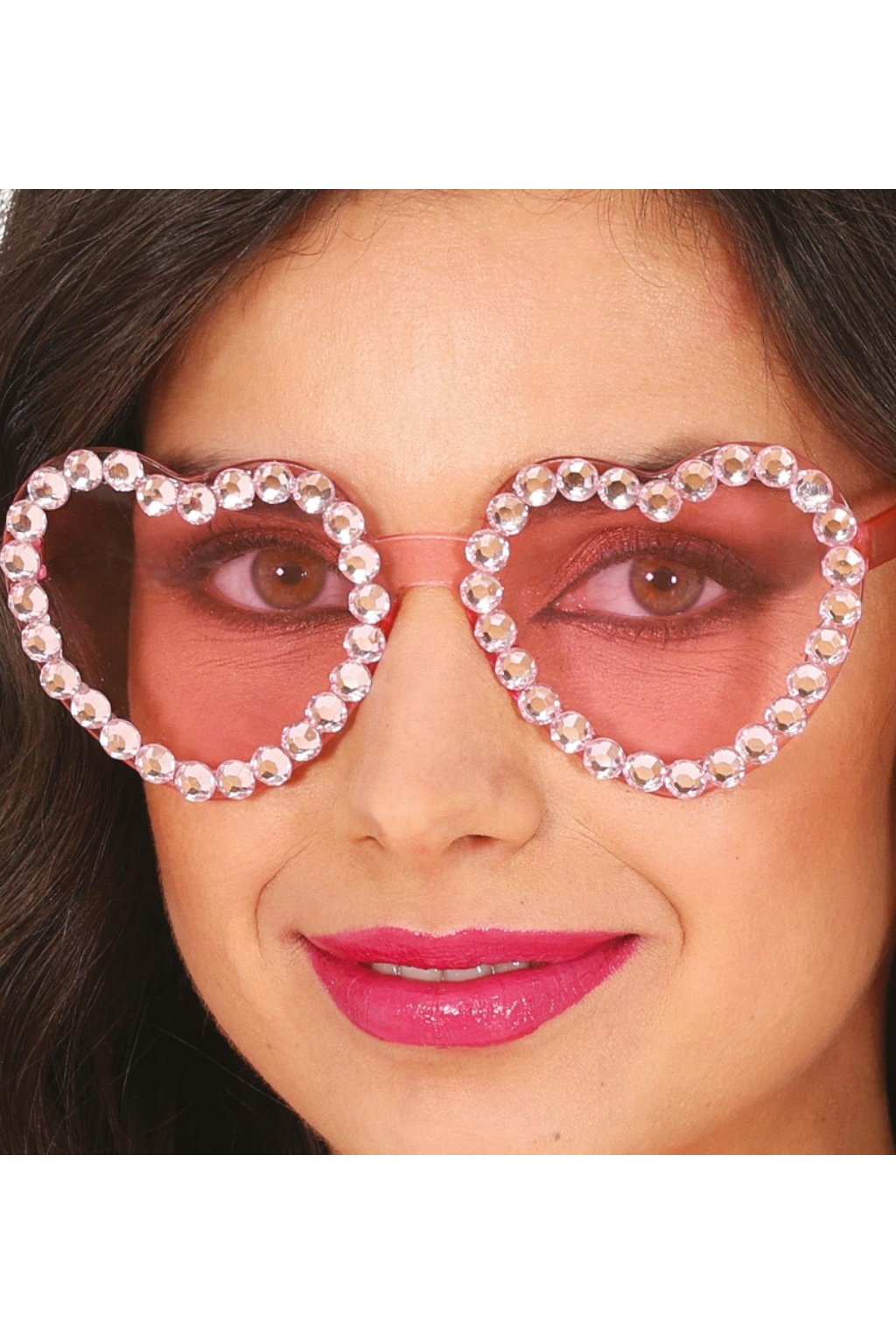 Růžové čočky ve tvaru srdíček lemované třpytivými kamínky