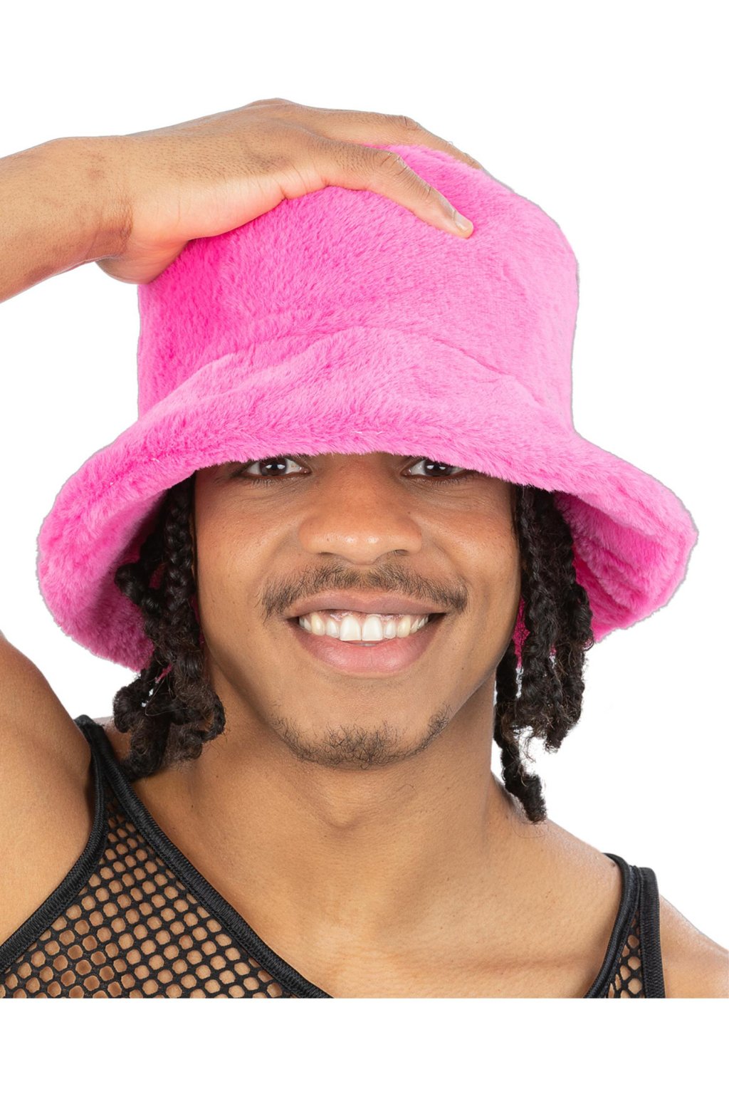 Růžový retro chlupatý klobouk 90. léta - Bucket Hat