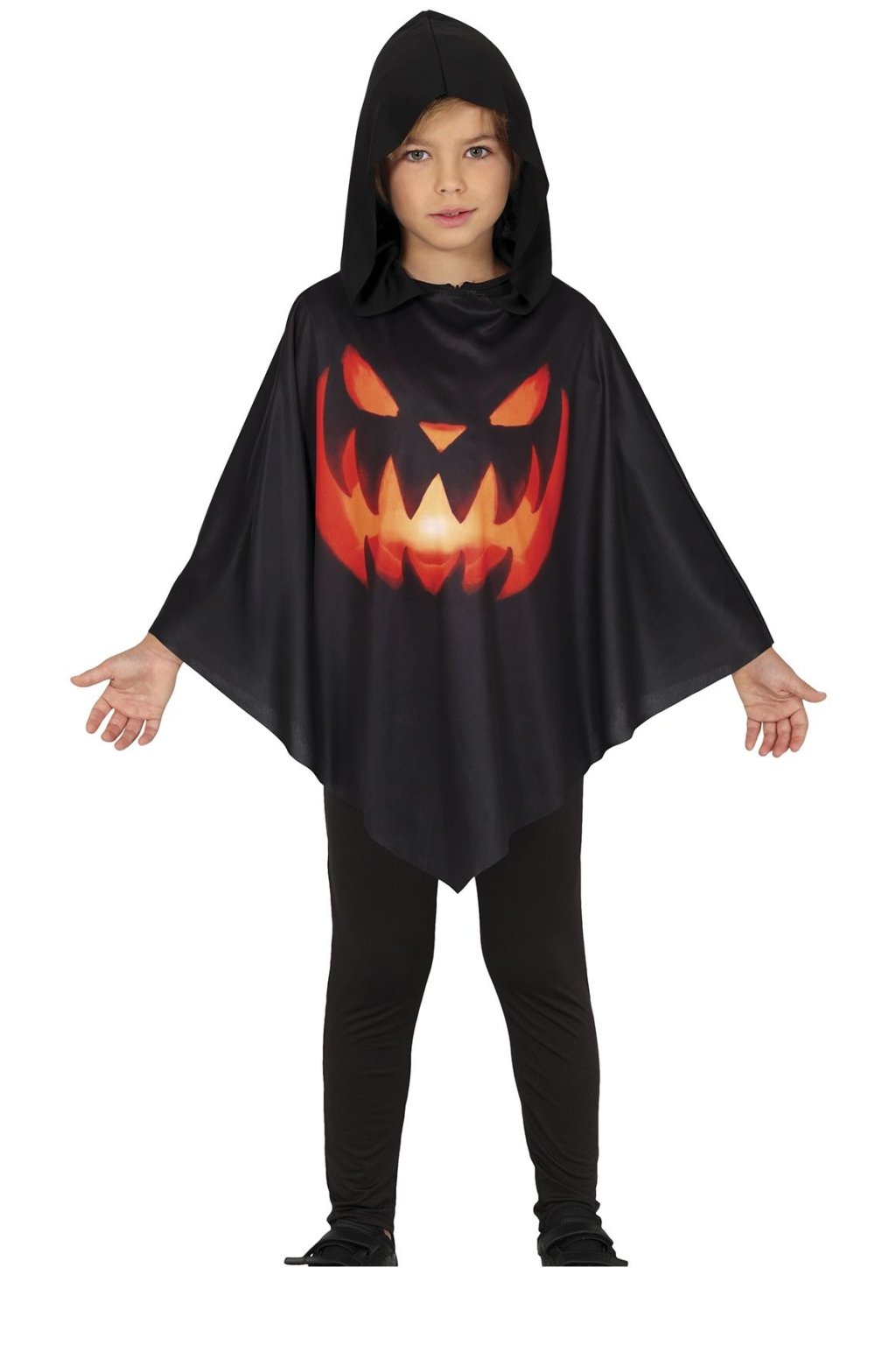 Černé pončo s velkým potiskem děsivé svítící dýně