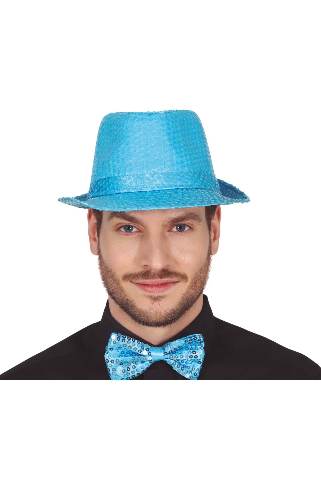 světle modrá barva s lesklými flitry