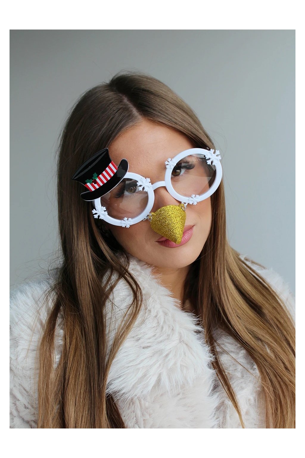 bílé vánoční brýle se sněhuláčím motivem