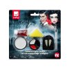 Součástí dokonalého make-upu je sada která obsahuje barvy na obličej (bílá, černá, červená), upíří zuby, aplikační houbičku a krev.